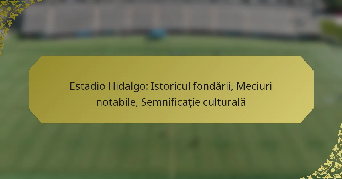 Estadio Hidalgo, înființat în 1993 în Pachuca, Mexic, este un loc proeminent pentru evenimente sportive și culturale. Ca teren de acasă al Clubului de Fotbal Pachuca, a găzduit numeroase meciuri semnificative care au influențat istoria fotbalului mexican. Dincolo de sport, stadionul servește ca un loc vital de întâlnire pentru evenimente comunitare, întruchipând mândria locală și patrimoniul cultural al regiunii.